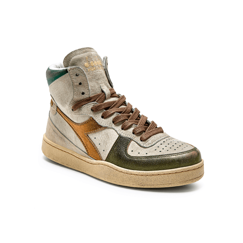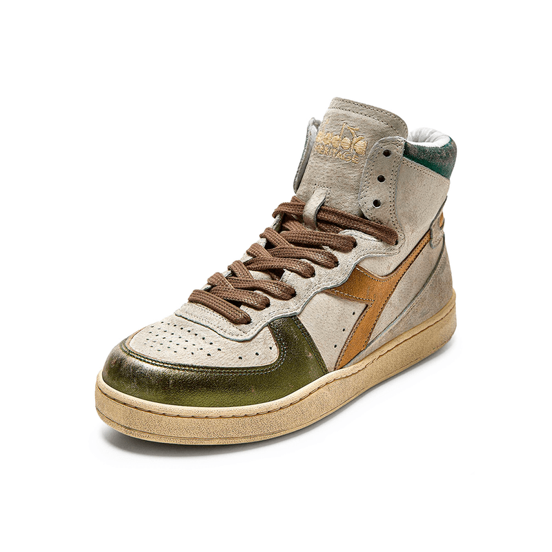 MI BASKET METAL PIGSKIN USED Criado na década de 80 para acompanhar os pés dos campeões do basquete de Milão, o MI Basket marcou história no esporte italiano. Com produção artesanal de alto padrão da Diadora, esse tênis faz referência à silhueta dos anos 80 remodelada para um visual contemporâneo. O novo visual do MI Basket, um dos grandes modelos da linha Heritage, agora é produzido em couro premium laminado, efeito metalizado e tratamento estonado para criar o efeito desgastado. Este é o tênis ideal para quem quer levar a essência do esporte italiano para diferentes looks casuais.